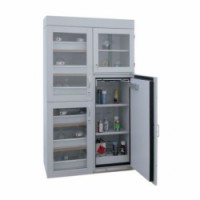 Bezpečné a předpisové skladování agresivních i hořlavých látek (90 minut, speciální protipožární oddíl) na pracovištích podle EN 14470-1 a TRGS 510. Vnější a vnitřní konstrukce skříně v barvě RAL 7035. Varianta skříně: žluté dveře RAL 1007. Konstrukce skříně z HPL desek. Izolace dle DIN 4102. Samostatně uzamykatelné oddíly cylindrickým zámkem pro skladování různých typů kapalin. Přípojka na odvětrávací systém DN 80 v horní části skříně. Výškově nastavitelné police v rastru 64 mm. Provoz dle TRGS 510 (schválené použití i bez napojení na odsávání vzduchu). Uzemnění ve shodě s TRBS 2153. Značení podle EN DIN EN 14470-1 / TRGS 510 / ISO 3864 / ASR A1.3.Bezpečnostní skříně na agresivní látky, jedy a hořlaviny KOMBILAB StoreLAB, 90 minut, 1200 KL3 GL