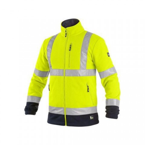 Pánská výstražná fleecová bunda s reflexními pruhy. Rukávy do gumy, boční i náprsní kapsy na zip, stahování v dolním okraji, podšívka ze síťoviny. Doporučené použití: stavebnictví, silničáři, řidiči, letecká a lodní doprava, logistika, řidiči kamionů, policie, záchranáři. Velikost: 2XL-XL Svrchní materiál: 100 % polyester, 280 - 290 g/m2 Reflexní doplňky: AnoBunda CXS PRESTON, výstražná, pánská, žluto-modrá