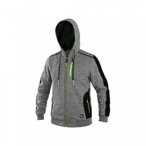 Pánská bunda z pleteniny, kombinace materiálů, kapuce napevno, doplňky v kontrastní žluté barvě, pas a rukávy ukončeny pružnou manžetou, reflexní doplňky, náprsní kapsa na zip, 2 spodní kapsy na zip. Velikost: S-3XLBunda INDIANA, pánská, šedo-černo-žlutá