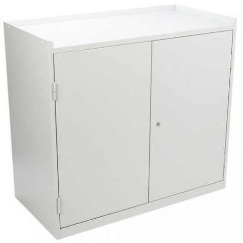 Dílenská skříň vhodná pro uložení pracovních nástrojů a pomůcek. Skříň je na horní straně vybavena zvýšeným lemem, který zabraňuje pádu předmětů. Skříň je dvoudveřová a uvnitř se nacházejí dvě police a dvě zásuvky na teleskopických výsuvech.Dílenská skříň na nářadí Manutan Expert, 91,5 x 100 x 50 cm