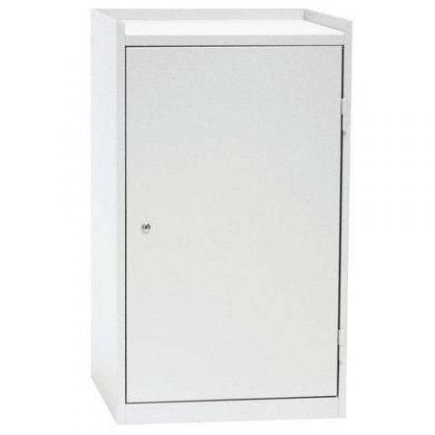 Dílenská skříň vhodná pro uložení nástrojů, pracovních pomůcek, spojovacích materiálů a dalších. Vrchní deska skříně je ohraničena zvýšeným lemem pro zabránění pádu předmětů. Uvnitř skříně se nachází zásuvka na teleskopickém výsuvu a dvě police.Dílenská skříň na nářadí Manutan Expert, 91,5 x 53,3 x 50 cm