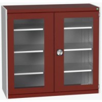 Kovové dílenské skříně s průhlednými plexi dveřmi pro snadnou kontrolu obsahu. Pozinkované police s nosností 100 kg, výškově nastavitelné v rastru 25 mm. Svařovaná ocelová konstrukce, povrchová úprava práškovým lakem. Uzamykání tříbodovým cylindrickým rozvorovým zámkem se dvěma klíči.Dílenské skříně s průhlednými dveřmi Bott Cubio, výška 120 cm