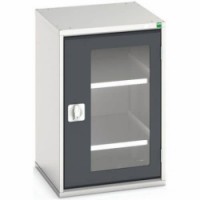 Kovové dílenské skříně s průhlednými plexi dveřmi pro snadnou kontrolu obsahu. Pozinkované police s nosností 75 kg, výškově nastavitelné v rastru 25 mm. Svařovaná ocelová konstrukce, povrchová úprava práškovým lakem. Uzamykání tříbodovým cylindrickým rozvorovým zámkem se dvěma klíči.Dílenské skříně s průhlednými dveřmi Bott Verso, výška 80 cm