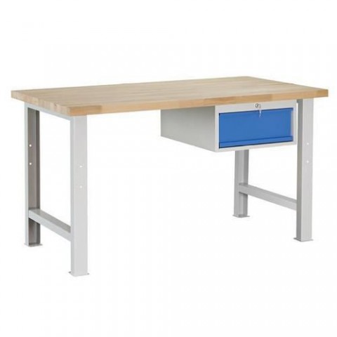 Dílenský stůl Weld ve dvou barevných variantách složený z pracovní desky, pevného podnoží a zásuvky. Stůl je stabilní a vyhovuje i náročnějším pracovním úkolům díky robustnímu provedení podnoží a vyšší váze bukové spárovky. Pracovní deska 150 x 80 cm z bukové spárovky tl. 4 cm, sražené hrany, bez povrchové úpravy. Maximální nosnost pracovní desky při rovnoměrném zatížení 500 kg. Svařovaná zásuvka v x š x h: 18 x 51 x 59 cm, výsuv 100%, kuličková ložiska pojezdů. Zásuvka uzamykatelná cylindrickým zámkem se dvěma klíči. Pevné podnoží z ocelového U - profilu 50 x 70 cm, tl. 3mm a ocelových plechů tl. 0,8 mm. Otvory v pracovní desce pro montáž podnoží nebo skříněk nutno předvrtat vrtákem pr. 4 - 4,5 mm (pro vrtání zvolte taková místa, kde se vyhnete spojům jednotlivých lamel stolu). Desku doporučujeme impregnovat speciálním olejem, především pokud je stůl umístěn ve vlhkém prostředí. Povrchová úprava kovových částí práškovým lakem.Dílenské stoly Weld, 84 x 150 x 80 cm