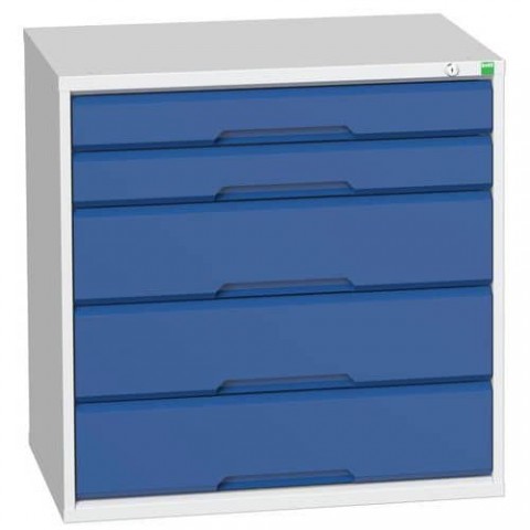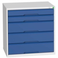 Kovové dílenské skříně Bott Verso se zásuvkami pro efektivní využití v provozech a dílnách. Zásuvky s nosností 75 kg a 100% výsuvy na válečkových ložiskách. Svařovaná ocelová konstrukce, povrchová úprava práškovým lakem. Centrální uzamykání cylindrickým zámkem se dvěma klíči.Dílenské zásuvkové skříně Bott Verso, výška 80 cm, 5 zásuvek