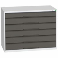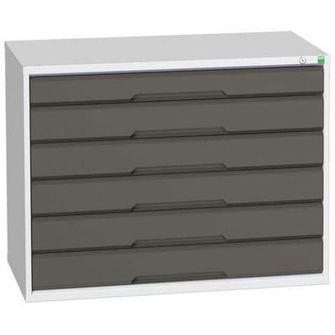 Kovové dílenské skříně Bott Verso se zásuvkami pro efektivní využití v provozech a dílnách. Zásuvky s nosností 75 kg a 100% výsuvy na válečkových ložiskách. Svařovaná ocelová konstrukce, povrchová úprava práškovým lakem. Centrální uzamykání cylindrickým zámkem se dvěma klíči.Dílenské zásuvkové skříně Bott Verso, výška 80 cm, 6 zásuvek