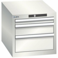 Dílenské zásuvkové skříňe Lista, 3 nebo 4 zásuvky. Zamykání klíčem. Optimální využití díky plnému výsuvu a optimální výšce čela zásuvek. Vynikající ochrana proti prachu, kapalinám a mechanickému opotřebení díky uzavřenému rámu s povrchem odolným proti nárazům a oděru. Systém proti převrátcení, který zabraňuje pádu zásuvky, a individuální zamykání zásuvek. Ochrana proti korozi elektroforetickým imerzním lakováním a stříkáním. Optimalizované úložné prostory a organizace díky dělicímu materiálu LISTA přizpůsobenému každému použití a zásuvkám vybaveným drážkami a perforacemi. Profesionální popisování s popisovacím softwarem LISTA Script a výklopnou úchytkou pro vkládání štítků. Dokonale tichý pohyb díky saně bez příčníkuDílenské zásuvkové skříně Lista, 3 nebo 4 zásuvky
