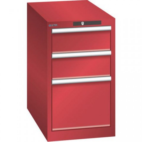 Dílenské zásuvkové skříňe Lista, 3 nebo 5 zásuvek.Zámek na klíč. Optimální využití díky plnému výsuvu a optimální výšce čela zásuvek. Vynikající ochrana proti prachu, kapalinám a mechanickému opotřebení díky uzavřenému rámu s povrchem odolným proti nárazům a oděru. Systém proti převrátcení, který zabraňuje pádu zásuvky, a individuální zamykání zásuvek. Ochrana proti korozi elektroforetickým imerzním lakováním a stříkáním. Optimalizované úložné prostory a organizace díky dělicímu materiálu LISTA přizpůsobenému každému použití a zásuvkám vybaveným drážkami a perforacemi. Profesionální popisování s popisovacím softwarem LISTA Script a výklopnou úchytkou pro vkládání štítků. Dokonale tichý pohyb díky saně bez příčníku.Dílenské zásuvkové skříně Lista, 3 nebo 5 zásuvek, 411x725x700 mm