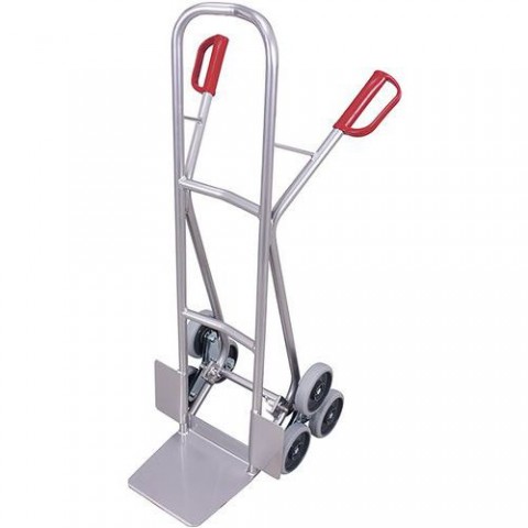 Hliníkový rudl určen pro přepravu po schodech. Vybaven třemi hvězdičkovými ráfky. Rozměry lopaty 300 x 255 mm. Vyrobeno ze svařovaných hliníkových trubek. Plastová madla s bezpečnostní ochranou zamezující poranění rukou. Lehká konstrukce zajišťuje snadnou manévrovatelnost. Kola vyrobeny z šedé termoplastické pryže. Plastový ráfek, kuličkové ložisko. Rozměr kol: O 160 x 40 mm.Hliníkový schodišťový rudl, do 200 kg, 61 x 63 x 131 cm