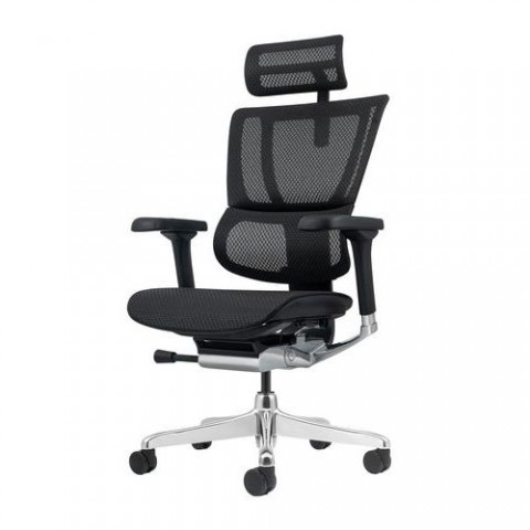 Ergonomická multifunkční kancelářská židle s jedinečným designem. Podhlavník se vzdušným sezením a maximálně odolná samonosná síťka (výroba v USA). Nová technologie sezení, síla protiváhy synchronní mechaniky je řešena skelným prvkem nikoliv pružinovým mechanismem. Kombinace leštěného hliníku a černých prvků. 5D měkčené polyuretanové područky, přední část topu područky se dá naklonit, aby si ruce odpočinuly.Kacelářská židle Joo