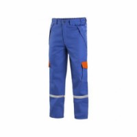 Pánské ochranné kalhoty, antistatické s trvalou nehořlavou ochranou PROBAN a úpravou odolnou proti kapalným chemikáliím typu 6 a typu PB [6]. Pas s poutky na opasek, vzadu do gumy, 4 přední kapsy na suchý zip, reflexní doplňky. Doporučené použití: svářeči, petrochemický průmysl, energetika, plynárenství a rafinérie. Velikost: 48-68 Svrchní materiál: 75 % bavlna 24 % polyester 1 % antistatické uhlíkové vlákno Reflexní doplňky: AnoKalhoty CXS ENERGETIK MULTI 9043 II, pánské, modro-oranžové