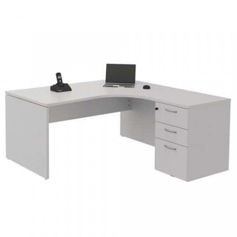 Kancelářské psací stoly s kontejnerem jsou dostupné v pravém i levém provedení. Možnost výběru ze dvou různých šířek. Velmi kompaktní - ideální pro malé prostory. Panelové nohy s aretačními šrouby umožňují větší stabilitu stolu. Desky z melaminových panelů o tloušťce 25 mm. Antireflexní úprava proti poškrábání s antibakteriálními vlastnostmi. Otvor v pracovní desce o průměru 80 mm pro vedení kabelů. Kontejner se 3 zásuvkami - 1 na zavěšení pořadačů. Centrální zamykání se 2 klíči.Kancelářské stoly s kontejnerem Manutan Expert, 72 x 160 - 180 x 152 cm, pravé/levé provedení, šedá