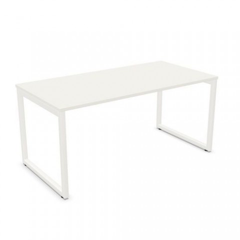 Bílý pracovní stůl vhodný do kanceláří. Pevná melaminová deska tl. 25 mm, opatřená 2mm lepenou hranou. Barva desky White Grey. Ocelové čtvercové podnoží je ošetřené práškovou barvou RAL 9016. Vyrovnávací patky na podnoží (+10 mm).Kancelářský stůl NowyStyl B-Space Desk, 160 x 80 x 74 cm, rovné provedení