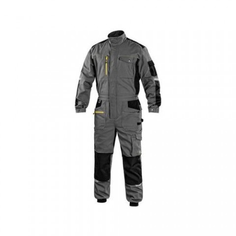 Pánská pracovní kombinéza, strečová tkanina umožňující volný pohyb, ramena vyztužena 600D polyesterem, rukávy s nastavitelnou manžetou, kapsička s klopou na levém rukávu, kryté zapínání na zip a druky, náprsní kapsy - na druk a zip, dvoucestný zip, ventilace na ádech, pas s gumou v bocích, přední kapsy s kapsou na zip, multifunkční kapsy na obou stranách, kolena zesílena 600D polyesterem s možností vložení kolenních výztuh, dvě zadní kapsy, jedna s klopou, pružná manžeta na nohavicích, reflexní doplňky. Doporučené použití: strojírenství, stavebnictví, lehký průmysl, automobilový průmysl, logistika, skladová manipulace, spedice, autoservisy, údržba, montáže, zemědělství, zahrada, hobby. Velikost: 48-64 Reflexní doplňky: Ano OEKO-TEX® STANDARD 100: AnoKombinéza CXS STRETCH, pánská, šedo-černá