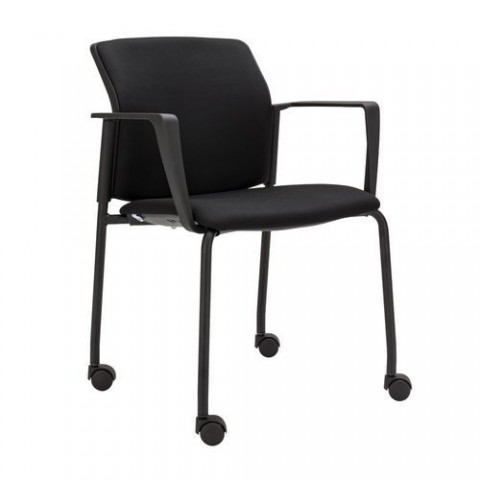 Čalouněná konferenční židle Logos s výrazně tvarovaným opěrákem a s kolečky. Židle je určena do interiéru a je pohodlná pro krátké i delší sezení. Součástí jsou plastové područky. Ocelová kostra v černém provedení s nosností až 140 kg. Možnost stohování.Konferenční židle Logos s kolečky, černá