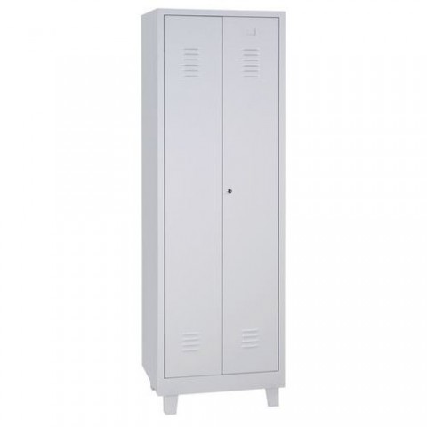 Úklidová uzamykatelná skříň ze svařovaného ocelového plechu. Uvnitř čtyři police a šatní tyč s třemi posuvnými háky. Možnost umístění štítku se jménem v horní části dveří. Účinné odvádění vlhkosti větracími otvory na dveřích.Kovová úklidová skříň, 190 x 60 x 50 cm - Manutan Expert