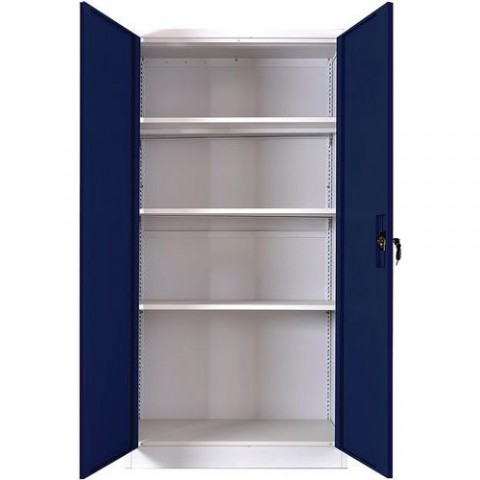 Vysoká skříň na dokumenty a šanony vhodná do kanceláře. Dveře zavěšení na vnějších pantech s uzamykáním pomocí cylindrického zámku. Povrchová úprava práškovým lakováním. Spisová skříň je umístěná na podstavci. Teplotní odolnost - 30 až + 220 ?.Kovové spisové skříně Manutan Expert, 185 x 90 x 40 cm