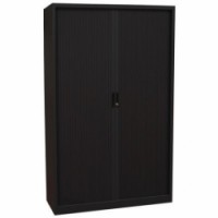 Skříň s roletou v různých barevných variantách. Výškově přestavitelné police. Cylindrický zámek, dva klíče.Kovové spisové skříně s roletou, 4 police, 195 x 120 x 45 cm