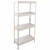 Kancelářské regály pro lehké až střední zatížení Robustní s dvojitým nýtovaným upevněním kolejnic a 1 výztuhou na úroveň pod horní deskou. Odolný bílý epoxidový nátěr.Kovový regál Rapid 3 office, 1800x900x400, 1200 kg, 4 dřevovláknité police