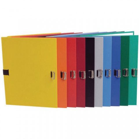 Zapínání na pásek s vroubkovaným jezdcem.Kroužkové pořadače z kartonu, 24x32 cm, 10 barev