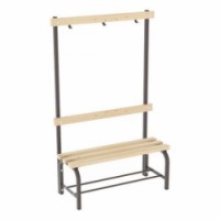 Lavice s integrovanou šatní stěnou je vhodná zejména do šaten škol, tělocvičen a jiných sportovních zařízení. Konstrukce z ocelových profilů 3 x 3 cm a 2,5 x 2 cm. Sedací plocha je vyrobená ze smrkových latí o rozměru 6 x 3,5 cm. Rošt lavičky je tvořen z ocelové trubky o průměru 16 mm. Opatřená 3 háčky pro odkládání oděvů.Lavice Lisa s věšákovou stěnou, 100 cm
