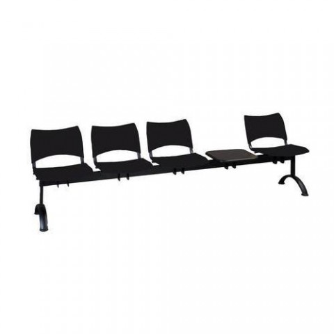 Lavice se čtyřmi plastovými sedáky a odkládacím stolkem jsou vhodné především do čekáren, hal, sálů a jiných veřejných prostor. Robustní kovová konstrukce v černé barvě zaručuje dobrou stabilitu. Lavice do čekáren lze doplnit o područky. barva: černá, červená, modrá, šedá, zelená barva konstrukce: černá materiál: plast materiál konstrukce: kov počet míst: 4 rozměry stolku v x š x h: 2 x 45 x 45 cm výška sedáku: 42 cm nosnost: 4 x 100 kg povrchová úprava konstrukce práškovým lakem, dodáváno v rozloženém stavu včetně montážního materiáluLavice Visio, čtyřmístné se stolkem