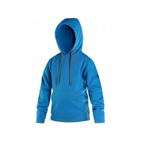 Dětská mikina s klokaní kapsou, kapuce napevno s možností stažení na šňůrku, pas a rukávy ukončeny pružnou manžetou z žebrovaného úpletu, reflexní šňůrky, vnitřní strana jemně počesaná. Finální silikonová úprava materiálu, která zajišťuje vyšší měkkost a odolnost vůči zašpinění. Vhodné pro potisk a výšivku. Velikost: 120-170 Svrchní materiál: 65 % bavlna 35 % polyester Reflexní doplňky: AnoMikina CXS ARYN, dětská, azurově modrá