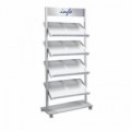 S 5 policemi, které jsou umístěné na jedné straně. Snadno přemístitelný díky 4 kolečkům. Do každé police se vejdou 3 stohy dokumentů formátu A4 umístěné vedle sebe.Jednostranná prezentační stojan Paperflow, 5 přihrádek