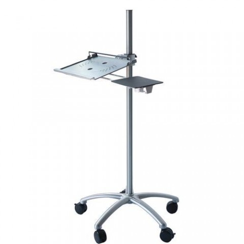 Pojízdný výškově nastavitelný stojan na notebook s integrovaným držákem myši. Uzamykatelná bezpečnostní tyč proti krádeži notebooku. Brzděné kolečko pro zajištění polohy stojanu.Mobilní stojan na notebook Manutan Expert