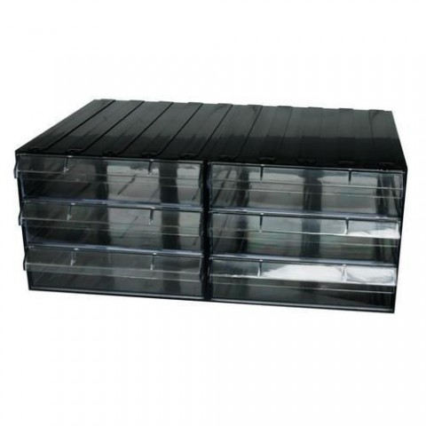 Organizér vyrobený z nárazuvzdorného polystyrenu je určen k přehlednému uskladnění nářadí, šroubků a jiného drobného materiálu v dílnách, skladech atd. Zásuvky mohou být rozděleny pomocí plastových boxů.Modulové organizéry PS, 6 zásuvek