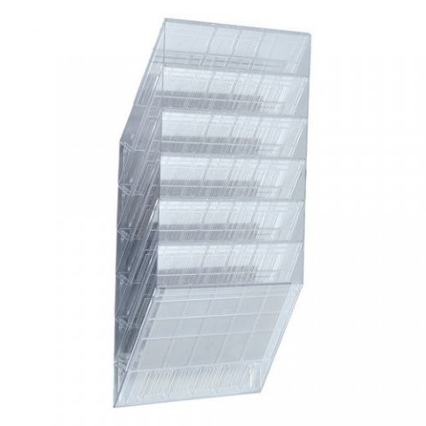 Estetický a robustní nástěnný stojan se 6 přihrádkami. Vhodné pro dokumenty formátu A4 v orientaci na šířku. Přihrádky lze zavěsit samostatně, vedle sebe nebo na sebe.Nástěnné stojany na brožury Flexibox, výška 62 cm, šířka 34,8 cm