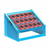 Optimálním prostředkem pro skladování nástrojů i nářadí na pracovním stole je NC stolní stojan. Horní část stojanu můžete vhodně doplnit žlabem s dělením pro drobné nástroje a nářadí. Základní konstrukce stojanu je tvořena sešroubovanými vyztuženými svařenci z ocelového plechu. Boční stěny jsou perforované, aby bylo možné zavěšení nosičů, nástrojových rámů a zásuvek hloubky 19D. Polohu rámů a nosičů můžete nastavit horizontálně nebo pod úhlem 15 či 30 stupňů.NC stolní stojany 36x27D s vybavením, varianta 8