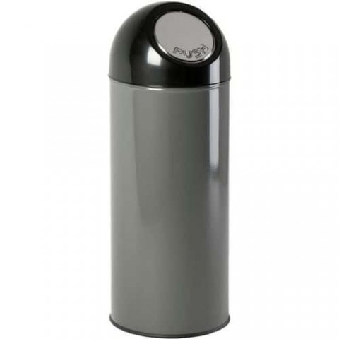 Koš na odpadky s otevíráním pomocí tlačítka. Kovové tělo a plastové víko. Tlačný ventil je vyroben z nerezové oceli.Odpadkový koš bez vložky Bullet 30 l až 55 l – V-Part