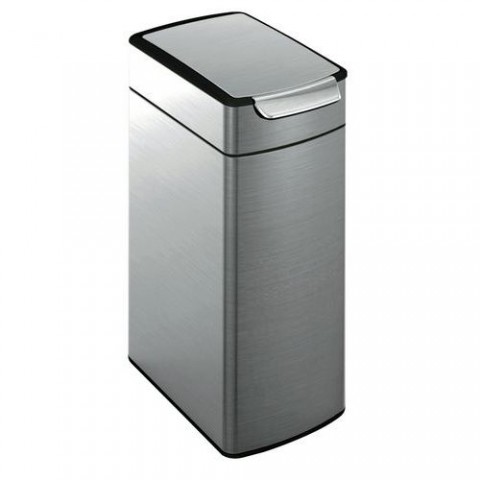 Odpadkový koš Touch-Bar z broušené nerezové oceli s povrchovou úpravou proti otiskům prstů. Obdélníkový se speciálním víkem. Otevírá se nebo zavírá jednoduchým dotykem. Kompaktní design se vejde i do těch nejtěsnějších prostor. Vyjímatelný kbelík pro snadné čištění. Protiskluzová základna chrání podlahu a udržuje koš na místě.Odpadkový koš Slim Touch–Bar – 30 l a 40 l – Simplehuman