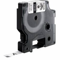 Etiketa odolná vůči vlhkosti, vysokým teplotám a UV záření. Černé písmo na bílém pozadí.Páska Rhino permanentní, 12 mm, šedá