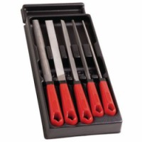 Profesionální modul pro servisy a dílenské vozíky. Obsahuje 5 pilníků s pohodlnými rukojeťmi – typy: plochý, půlkulatý, kulatý, čtyřhranný a trojúhelníkový. Uložené na termoformovaném tácu PL.335 (velikost 3 moduly), zajišťujícím přehled a pohodlí při přenášení. Hmotnost sady cca 2,3?kg – stabilní, ale stále přenosná.Plastový modul s pilníky Facom, 5 ks