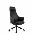 Celočalouněné luxusní křeslo s vysokým opěrákem a integrovanými čalouněnými područkami. Opěrák s bočním vedením trupu a optimální bederní podporou. Potah na dotykových partiích z jemné hovězí kůže, ostatní plochy ze syntetické kůže - microfiber leather. Široký, velice pohodlný sedák s jemným perforováním na bocích, pro zvýšení prodyšnosti. Čalounění ze studené pěny vstřikované do formy s vysokou životností. Synchronní mechanismu s automatickým nastavením síly protiváhy a trojnásobnou aretací. Hliníkový kříž o O700 mm lakovaný matnou černou barvou. Kolečka O 60 mm s gumovou obručí pro všechny typy podlah. Nosnost křesla 150 kg.Křeslo GLORIA HIGH BLACK