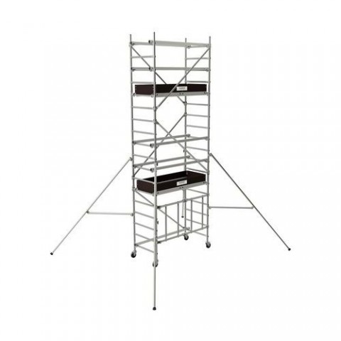 Runner je hliníkové pojízdné lešení s podlahovou plochou 148 x 58 cm. Pracovní výška až 7,60 m. Naprostá bezpečnost díky kolejnicím a podkolejím instalovaným jednou osobou pomocí systému teleskopických tyčí T-GRIP. Jeho skládací základna umožňuje ultra rychlou montáž a minimální prostor, což usnadňuje přepravu. Vhodné zejména do vnitřních prostor. Ultra výkonný systém zamykání kol. Zesílené podnosy vybavené ergonomickými háčky. Splňuje normu EN 1004-1 a vyhlášku 2004-924.Pojízdné hliníkové lešení Runner Tubesca-Comabi