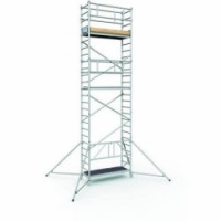 Mobilní lešení v šesti různých velikostech k bezpečnému provádění prací při montážích, opravách a údržbě ve výškách. Vyrobené z hliníkových profilů a příčlí 45 mm. Pracovní plošina o rozměru 60 x 180 cm, opatřená postranními okopovými zástěnami. Lešení od vel. 2 je vybavené stabilizačními podpěrami. Jednoduché ovládání sklápěcího mechanismu jednou rukou díky robustnímu aretačnímu čepu, zajištění a uvolnění se provádí pouze jedním pohybem. Nasazovací čepy z tvrzeného plastu s lehkým chodem, nedochází tak k příčení při zasouvání rámů. Pojízdnost zajišťují plastová kolečka s brzdou o průměru 125 mm. Kolečka lze upravit na výškově stavitelná kolečka pomocí adaptéru koleček (není součástí balení). Lešení splňuje normy EN 1004, třída lešení 3 (nosnost do 200 kg/m2).Pojízdné hliníkové lešení Zarges PaxTower 1T