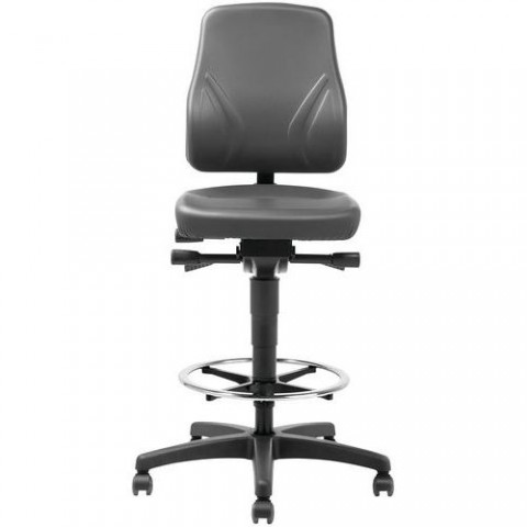 Dílenská židle se synchronním systémem vhodná do pracovních a dílenských prostor. Nastavitelnost výšky, hloubky a sklonu sedák, nastavitelnost výšky a sklonu opěradla. Sedák s polstrováním 10 cm v černé kožence, která zajišťuje komfort a jednoduchou údržbu. Komfortní sezení zajišťuje také opěrný kruh na nohy.Pracovní židle Manutan Expert Bas