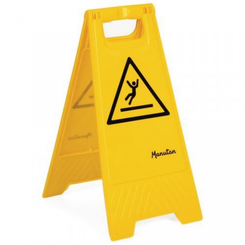 Skládací výstražný stojan pro upozornění na mokrou podlahu. Bez textu.Přenosná výstražná tabule Manutan Expert