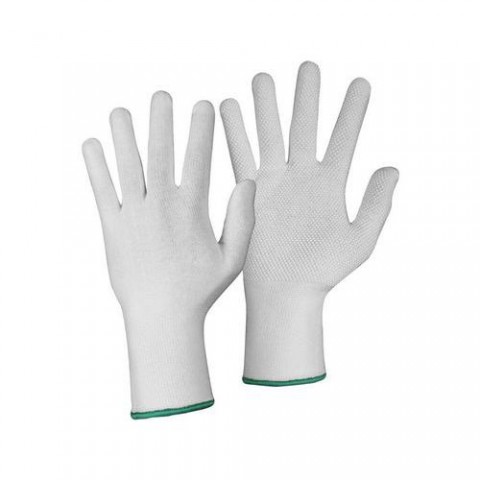 Komfortní bezešvé textilní rukavice. Dlaň a prsty pokryty drobnými PVC terčíky. Pružná pletená manžeta. Rukavice jsou určené pro kontakt se suchými typy potravin po dobu až 30 minut při teplotách do 40 °C pro opakované použití. Doporučené použití: skladování, manipulace s lehkým a drobným materiálem, kontakt se suchými potravinami, jemná montáž. Velikost: 06-11 Materiálové složení: 95 % bavlna 5 % elastan Prostředí: SuchéRukavice CXS TEWI, textilní s PVC terčíky, bílé