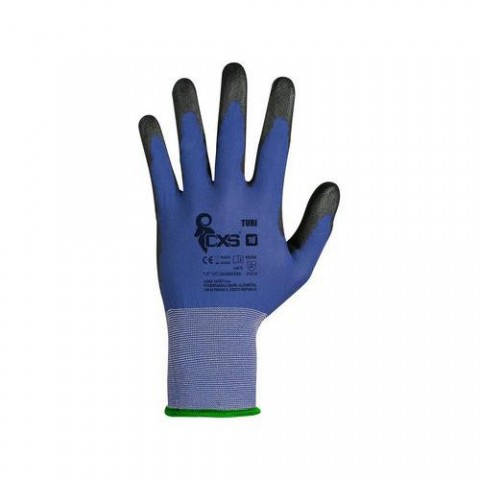Pletené bezešvé rukavice s pružnou manžetou, dlaně a prsty povrstveny polyuretanem. Hustota tkaní 18 G pro větší flexibilitu a citlivost. Doporučené aplikace: automobilový průmysl, elektronika, logistika, skladování, lehké montáže. Velikost: 06-11 Svrchní materiál: Materiál podšívky: nylon, Materiál povrstvení: polyuretan Prostředí: Vlhké; OlejovéRukavice CXS TURI, polomáčené v PU