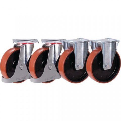 Sada 2 pevných a 2 otočných kol, polyuretanová, 200 x 50 mm, 96° Shore A