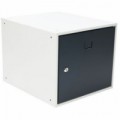 Šatní boxy pro poskládání boxové sestavy. Stabilní kovová konstrukce z plechu tl. 0,7 mm, povrchová úprava práškovou barvou. Dvířka zavěšená na vnitřních skrytých pantech, otevření až 180°. Možnost umístění jmenovky do štítku na dveřích. Předvrtané otvory pro jednoduché složení boxové sestavy.Svařované šatní boxy Manutan Expert Renly