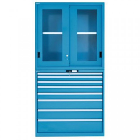 Skřín LISTA se skleněnými dveřmi a zásuvkami, 1023x725