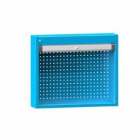 Kovové skříně k připevnění na stěnu. Uzavírání pomocí hliníkové rolety s pružinovým navíjením a rozvorovým zámkem. Perforovaná zadní stěna. K dostání ve třech barevných variantách (modrá, šedá, tmavě modrá). Nosnost 35 kg.Skříně s roletou na zeď, 1084 x 930 x 220 mm