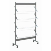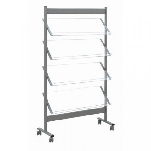 Stojan na brožury s ocelovým rámem. Vybaveno 4 dvojitými otočnými kolečky s brzdou. Police z akrylového skla.Stojany na brožury Ecoline