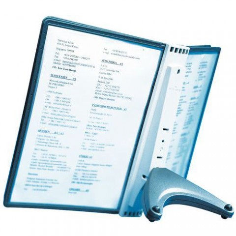 Díky malým rozměrům lze držák umístit do malých prostor. Vybaven průhlednými kapsami s antireflexní úpravou pro snadné čtení, dokumenty lze skenovat a kopírovat. Zatížená noha zajišťující skvělou stabilitu.Stolní držák na dokumenty Sherpa Soho s opěrkou, 5 kapes A4 - Durable