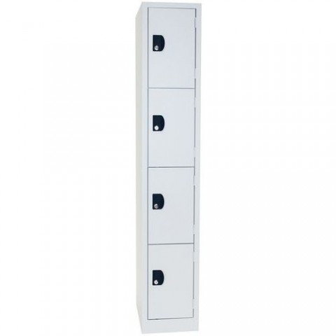 Svařované boxové skříně s odvětráváním na zadní straně boxů . Vhodné pro odkládání osobních věcí v kancelářích, sportovních klubech, v převlékárnách apod. Vyrobeno z ocelového plechu tloušťky 0,7 mm. Dvířka jsou zavěšená na vnějších pantech a jejich tichému zavírání napomáhají plastové dorazy. Jednotlivé boxy jsou samostatně uzamykatelné cylindrickým zámkem. Otevírání usnadňuje plastový úchyt dvířek s integrovanou jmenovkou.Svařované šatní skříně Manutan Expert Alain, 4 boxy, cylindrický zámek